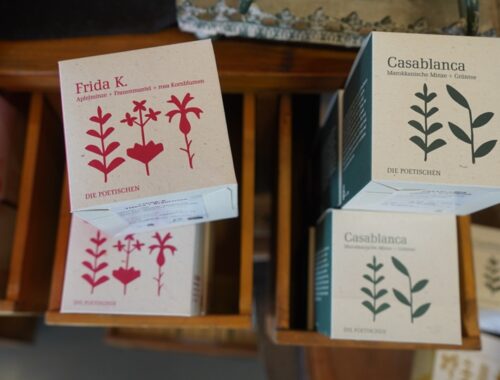 Im Hofladen oder im Hofcafé erwarten Sie eine Auswahl an Kräutertees aus dem Puschlav, perfekt für die kälteren Tage.